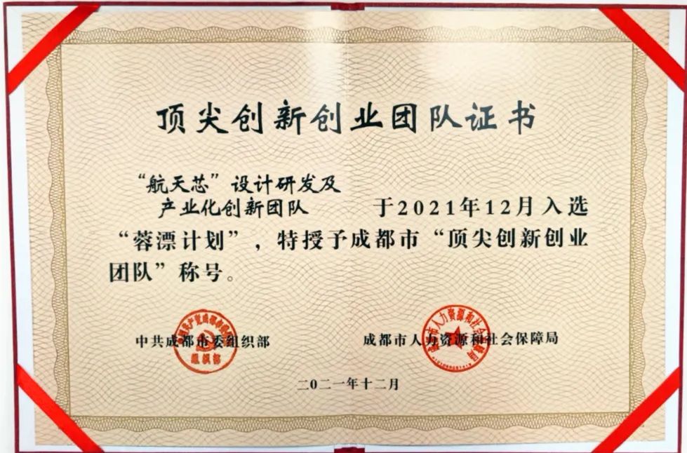 4月28日,2021年成都市“蓉漂計劃”入選專家和團隊發證儀式在成都人才綜合服務中心舉行。通信研究院“‘航天芯’設計研發及產業化創新團隊”獲成都市“頂尖創新創業團隊”稱號,并獲得500萬元人才獎勵。