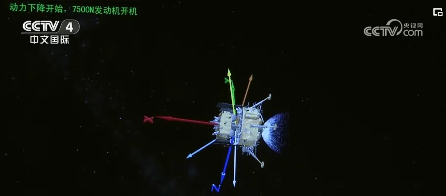 在嫦娥六號落月的最后階段,安裝在嫦娥六號底部γ關機敏感器開始實時精準測量嫦娥探測器與月球表面距離,當嫦娥六號落到距月面一定高度時,γ關機敏感器便會發出關機指令,關閉軌控和姿控發動機。
