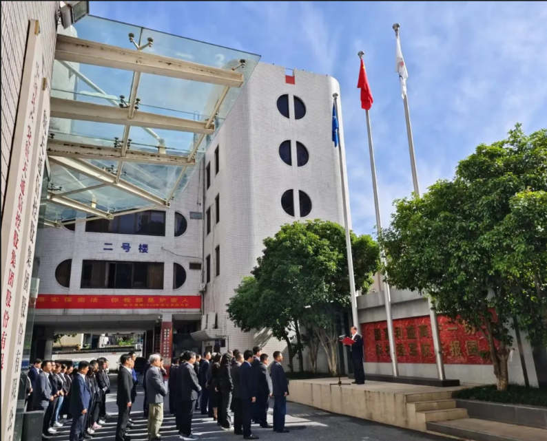 升旗儀式上,張忠榮宣貫了習近平總書記關于航天事業的重要論述,回顧了航天通信發展歷史上為航天事業做出的貢獻,代表黨委向奮戰在各條戰線的干部職工,致以節日問候和美好祝愿。