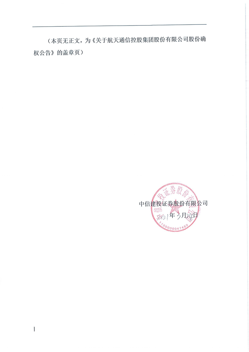 關(guān)于航天通信控股集團(tuán)股份有限公司股份確權(quán)公告