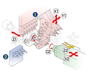 | 四、斯大走心機SR-20JIItypeA橫向鉆孔5軸單元下方2軸,采用模塊化設(shè)計,可根據(jù)工件需要自由安裝可交換式工具,實現(xiàn)工藝的靈活性,通過功能模塊的組合,輕松實現(xiàn)各種變化,以此獲得機床的最佳結(jié)構(gòu)。 | |||